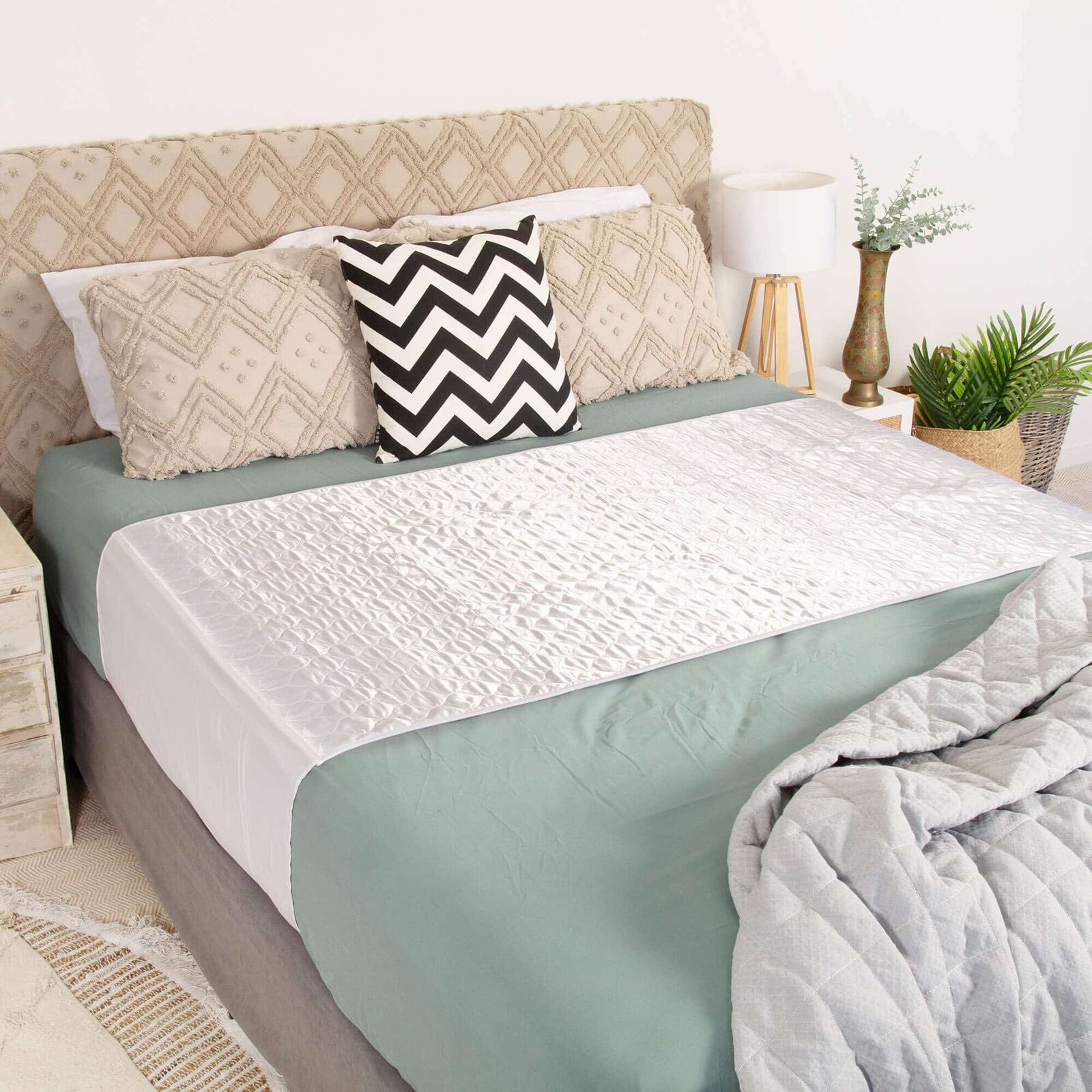 With a smooth satin top layer, this innovative bed pad offers a soft, luxurious feel that makes moving in and out of bed effortless—perfect for anyone seeking enhanced comfort and convenience. Beneath the elegant white surface lies our trusted waterproof and absorbent backing, ensuring your mattress stays dry and protected night after night.