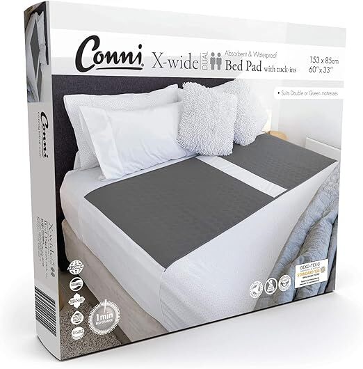 Conni X-wide Dual Reusable Bed Pad with Tuck-ins - Waterproof, Absorbent, Breathable and Washable