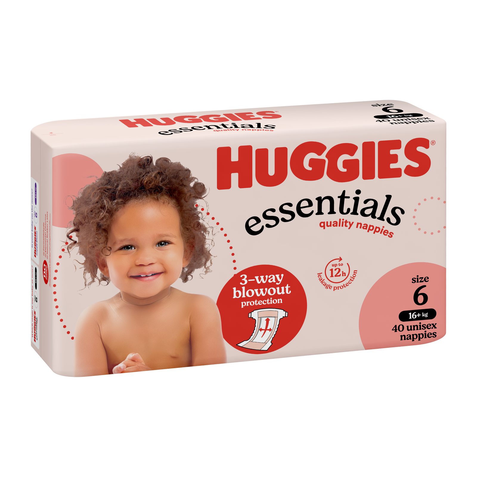 Huggies Essentials Size 6 Junior Nappies are designed for active toddlers weighing 16kg and over.
