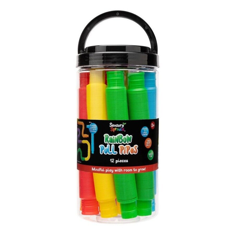 Bright, bendy, and endlessly fun, the Sensory Sprouts Rainbow Pull Pipes set offers a vibrant and engaging sensory experience for children. This set of 12 colourful, extendable tubes is perfect for hands-on sensory learning, supporting fine motor skills, coordination, and sensory regulation. Ideal for classroom activities, therapy sessions, or fidget play, these pull pipes encourage creative exploration and collaborative play through their pop-and-pull action.