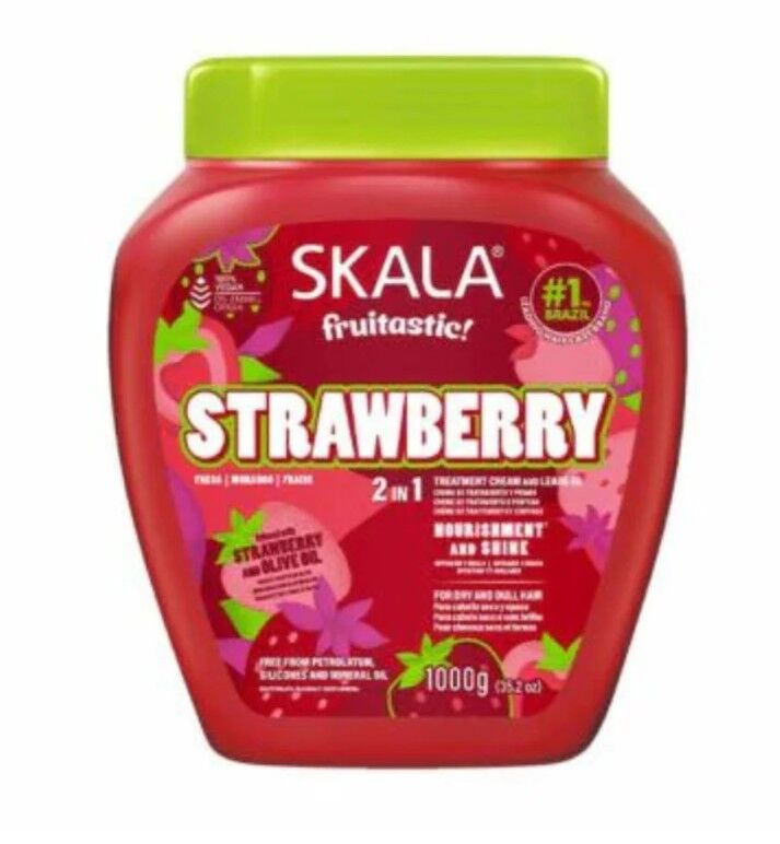 The Skala Frutástica Strawberry Treatment Cream is enriched with strawberry extract, vitamins A and E, and plant-based nutrients to deeply nourish and hydrate your hair. It restores softness, shine, and vitality while leaving a fresh, fruity scent that lasts all day.