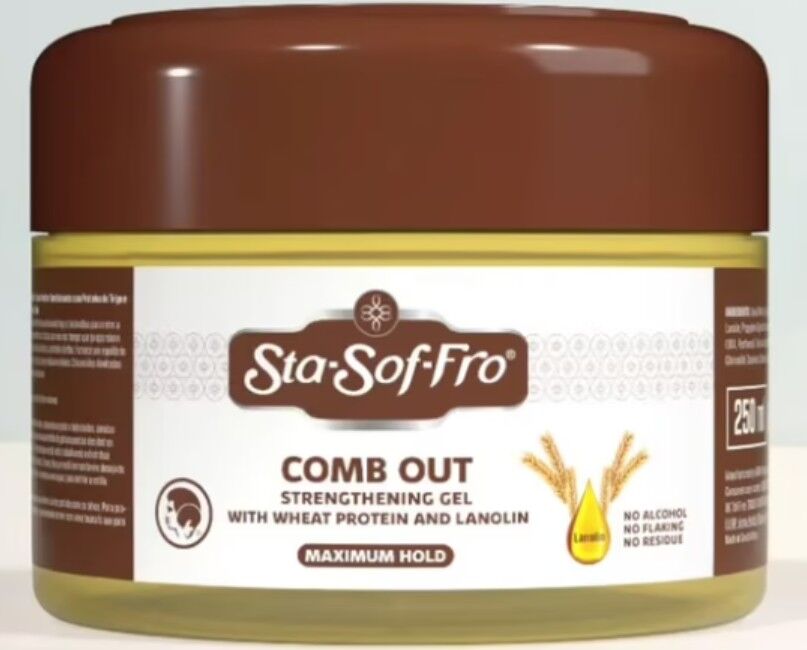 -Sta Sof Fro Comb Out Strengthening Gel is designed to gently detangle while providing a soft, manageable hold.