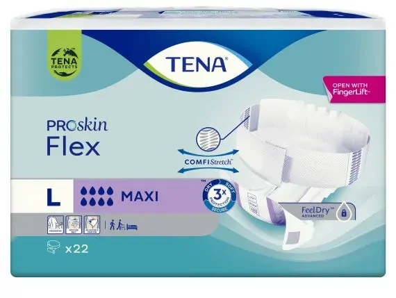 The TENA ProSkin Flex Maxi is a revolutionary belted incontinence brief designed to provide superior comfort, security, and ease of use for individuals experiencing heavy incontinence. Ideal for those with limited mobility or severe incontinence episodes, this brief ensures a dignified and effective solution for daily wear.